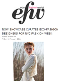NOW SHOWCASE CURATES ECO-FASHION DESIGNERS FOR NYC FASHION WEEK